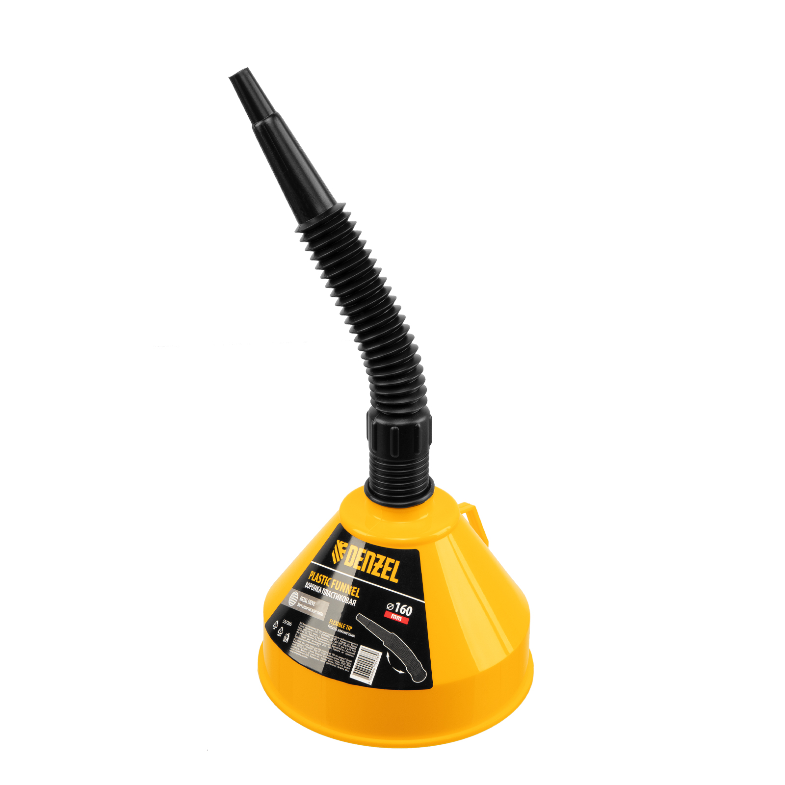 Воронка пластиковая 160 мм. (с металлическим ситом и гибким наконечником) Denzel 537206