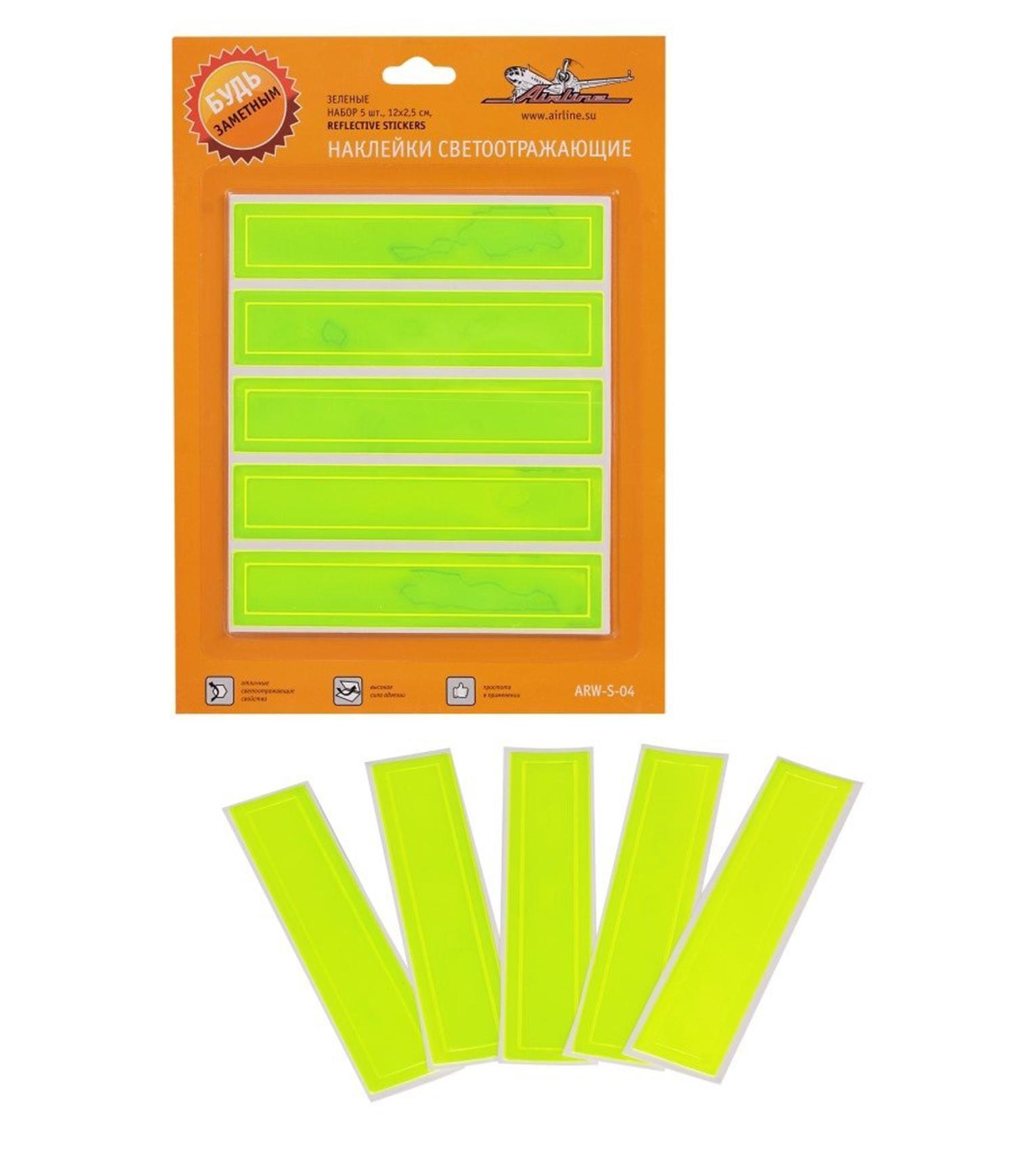 Наклейки светоотражающие, набор 5 шт.,12*2,5 см, зеленые AIRLINE ARW-S-04