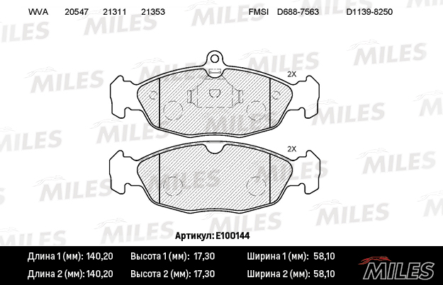 Колодки тормозные OPEL ASTRA F DAEWOO NEXIA CHEVROLET LANOS 1.4 1.5 97 передние без датчика E100144