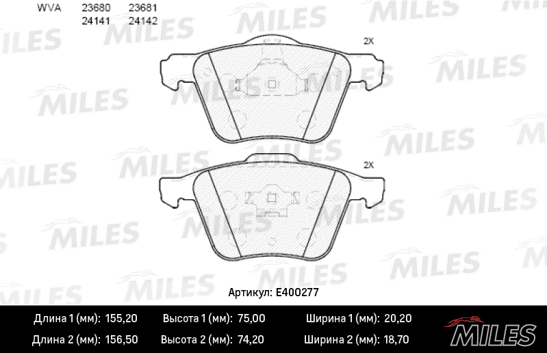 Колодки тормозные передние VOLVO XC90 02 без датчика E400277