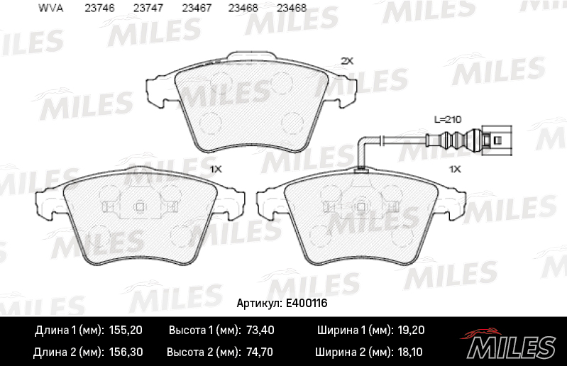 Колодки тормозные VOLKSWAGEN T5 MULTIVAN 03 R16 передние с датчиком E400116