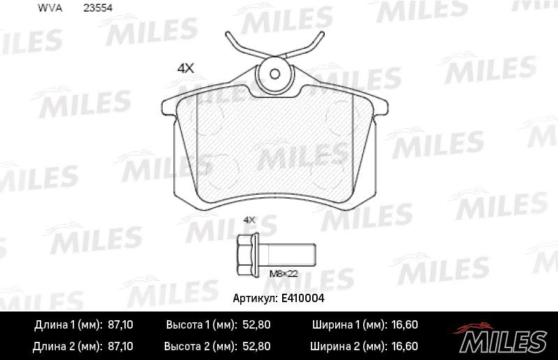Колодки тормозные задние AUDI A4 B5, B6 A6 C5 , CITROEN C4, PEUGEOT 307, 308 без датчика + болты E41