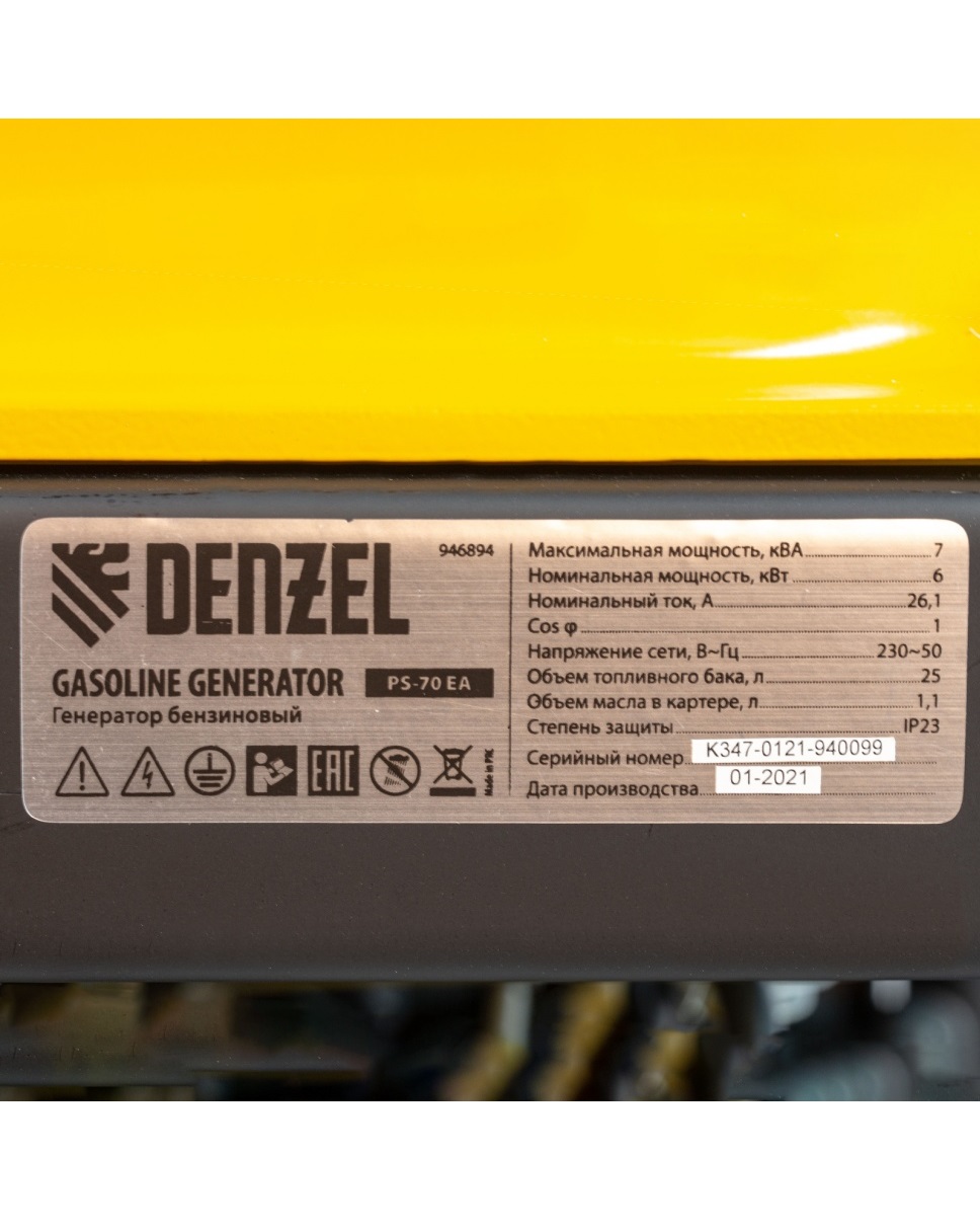 Генератор бензиновый 7.0 кВт 230 В электростартер Denzel
