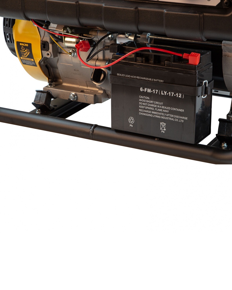 Обеспечит приборы суммарной мощностью до 7 кВт. Большой бак позволяет работать без дозаправки до 10 часов. Удобное управление и система защиты от перегрузки, короткого замыкания и от запуска с низким уровнем масла сделают работу безопасной и комфортной. А детали из высококачественных материалов обеспечат надежность и долговечность. Есть возможность подключения автоматики для стационарного обеспечения дома резервным питанием. : Ручной, электрический и автоматический старт позволят легко включить генератор в любой ситуации. Двигатель защищен от работы при низком уровне масла - при падении ниже допустимой отметки генератор автоматически отключается. Усиленная конструкция рамы диаметром 32 мм защитит от повреждений. С помощью цифрового дисплея легко отслеживать напряжение, частоту, моточасы и наличие масла. Лаконичная и интуитивно понятная панель управления.