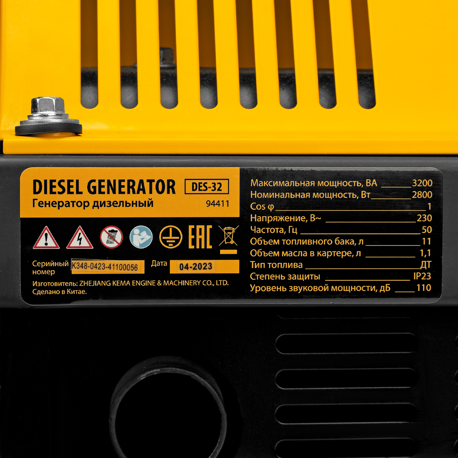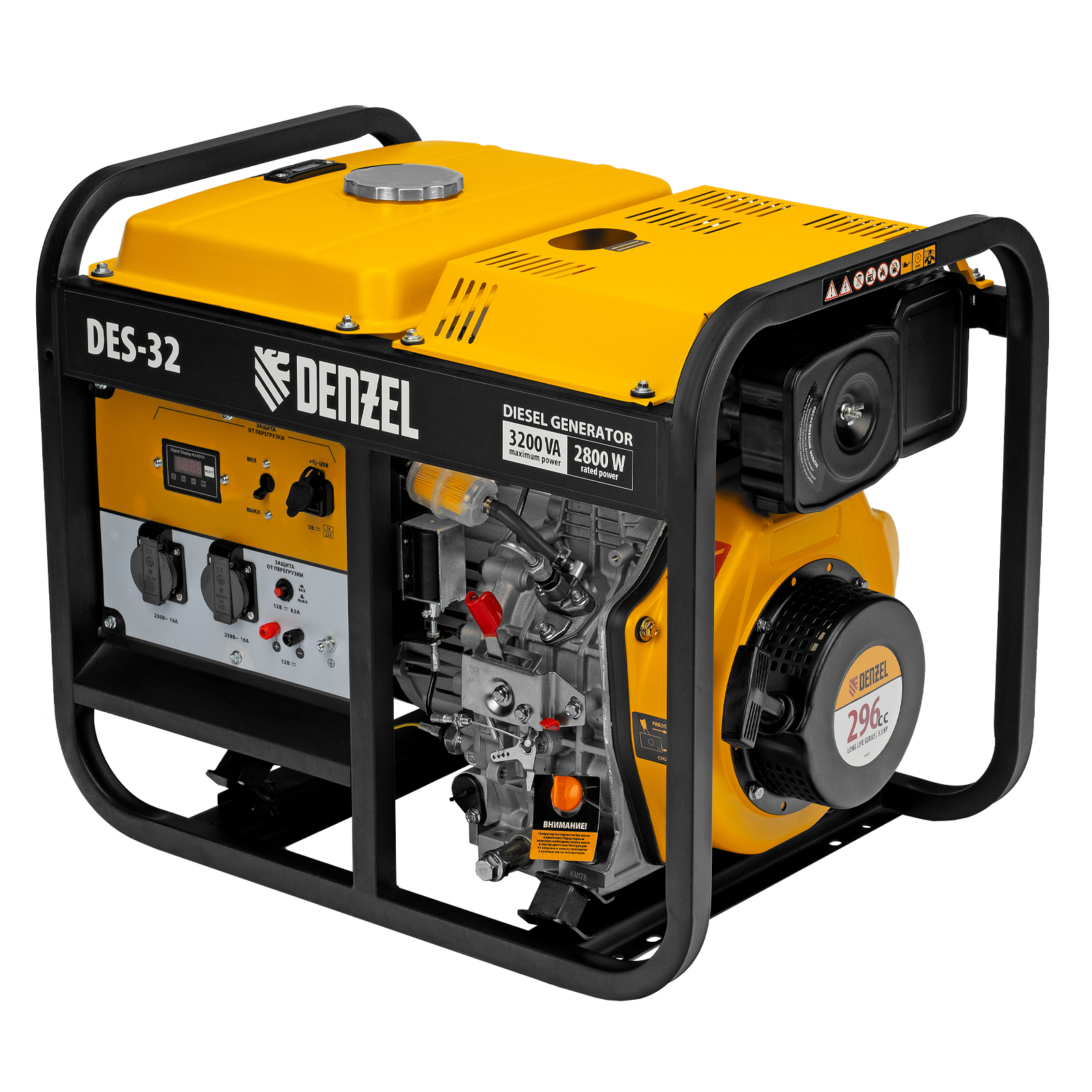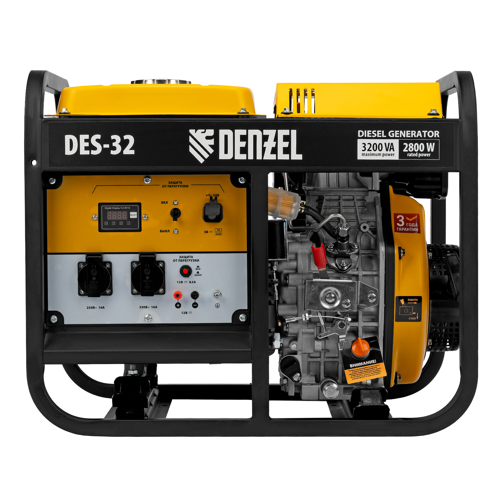 Генератор дизельный DES-32 (3,2 кВт, 230 В, 11 л) ручной стартер, Denzel 94411