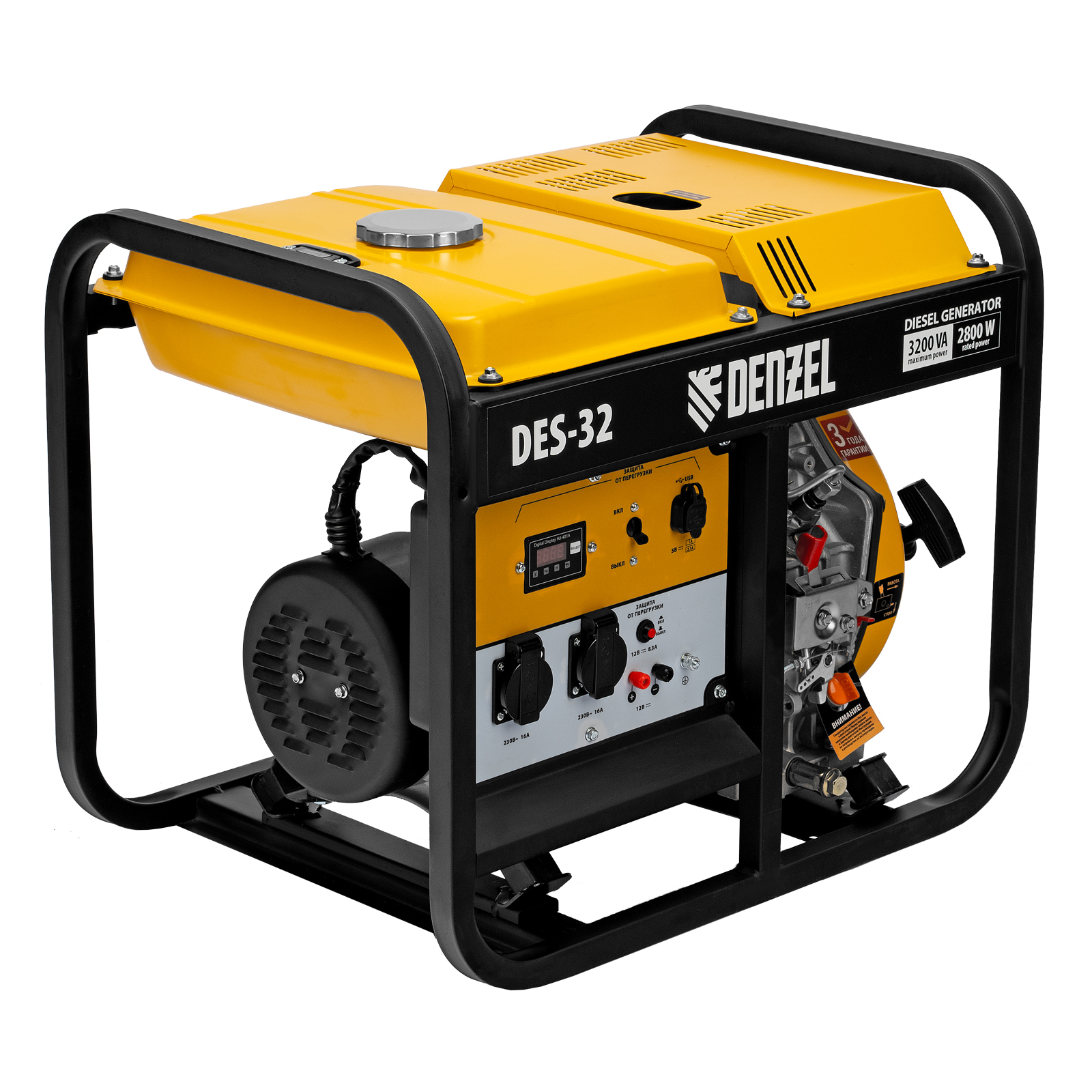Генератор дизельный DES-32 (3,2 кВт, 230 В, 11 л) ручной стартер, Denzel