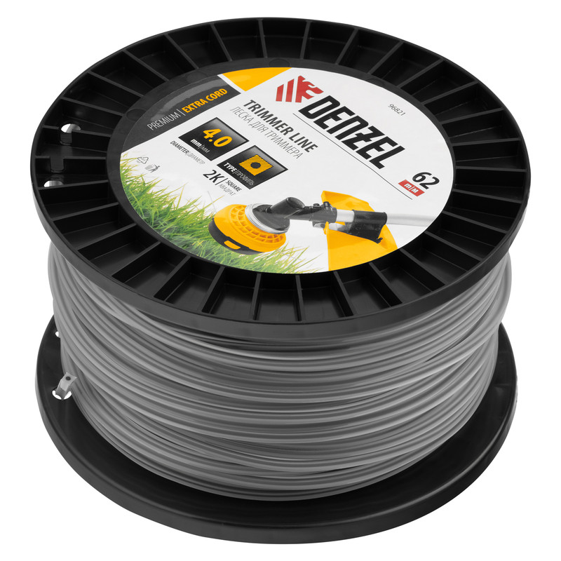 Леска для триммера двухкомпонентная квадрат (4,0мм. х 62м.), на DIN катушке EXTRA CORD Denzel
